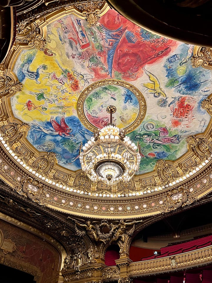 Up that massive stairway you’ll find the theater space with its dome by Chagall (added in 1964, when the artist was, apparently, a still-energetic 77-year-old), and room after room where people went, and likely still go, to see and be seen. The degree of opulence in these spaces matches one’s degree of social standing—or did, back in the day. Because you know, money and power mingling with the less well endowed—well, it just isn’t done.