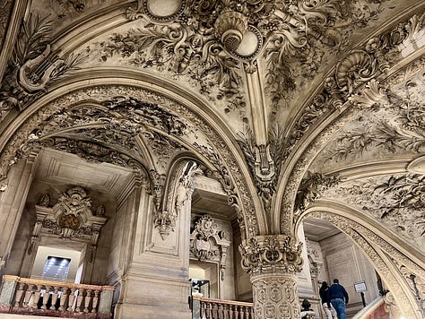 As always for me, travel is primarily about art and language. I had the same reaction to being in a European country other than Italy as I did when I went to Barcelona in 2022: I become almost language-less. While I have no problem switching exclusively to English when I go to the States (well, except for the occasional automatic buongiorno or ciao), I find it extremely odd to speak English in Europe. I become tongue-tied, stilted; I keep spouting Italian when I don’t mean to. I hate not having at least a bare-bones knowledge of the language being spoken all around me. And that’s on me, for failing to learn some tourist-level French.