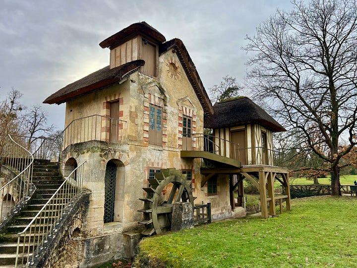 What I did photograph on my first visit to Versailles were the estate’s outlying buildings, the elegant Grand and Petit Trianon and the adorable Queen’s Hamlet, a working farm with fanciful buildings.
